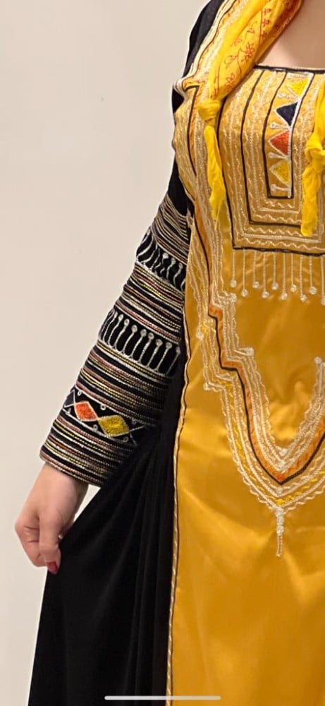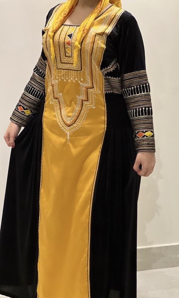 ثوب عسيري مميز قماش تفته مع مخمل على الجوانب والاكمام