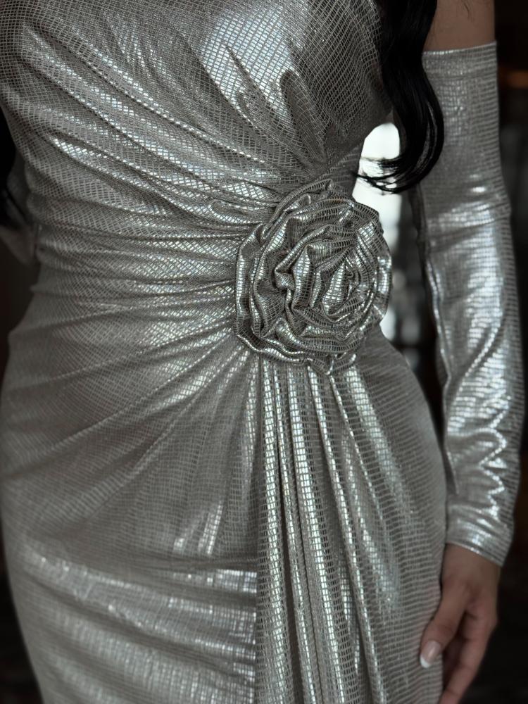فستان سهرة ماسك بتدخيلة ورده من الخصر