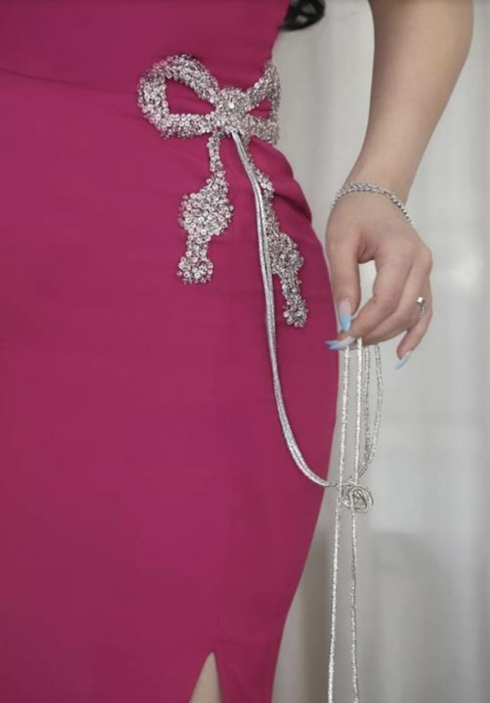 باللون الأسود أو الفوشي، اسمتعي بأجمل فستان سهرة ناعم بكم واحد مع ستريس، يقدمه لكي متجر لمسة سيلا حيث تم تصميمه بـ قماش باربي، حتى يمتاز بالنعومة على الجسم