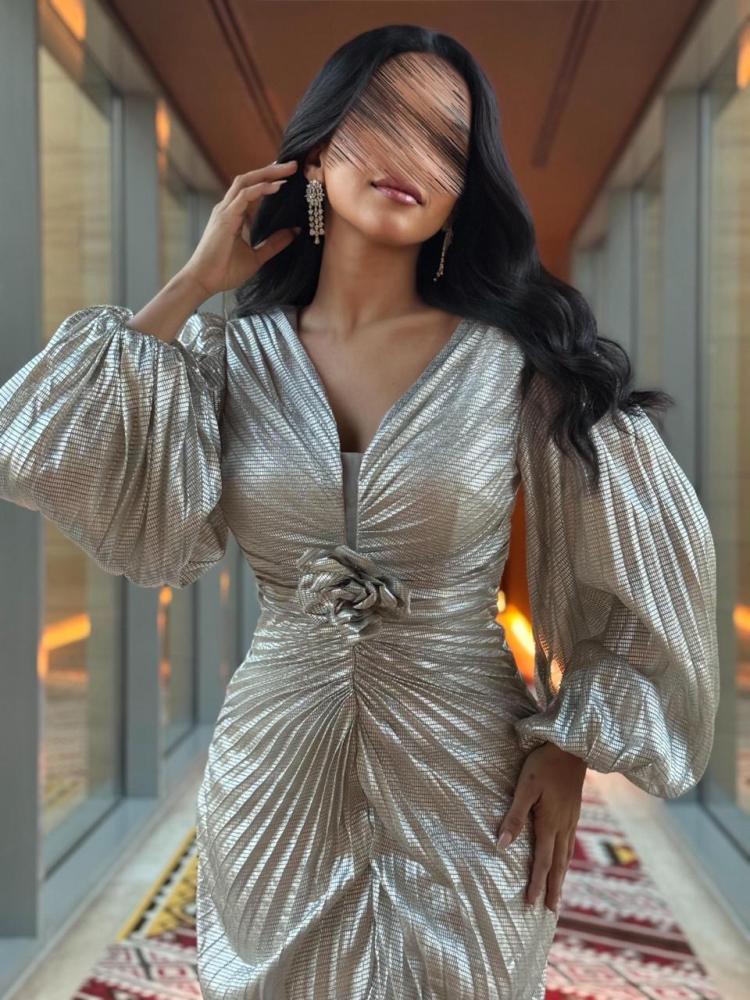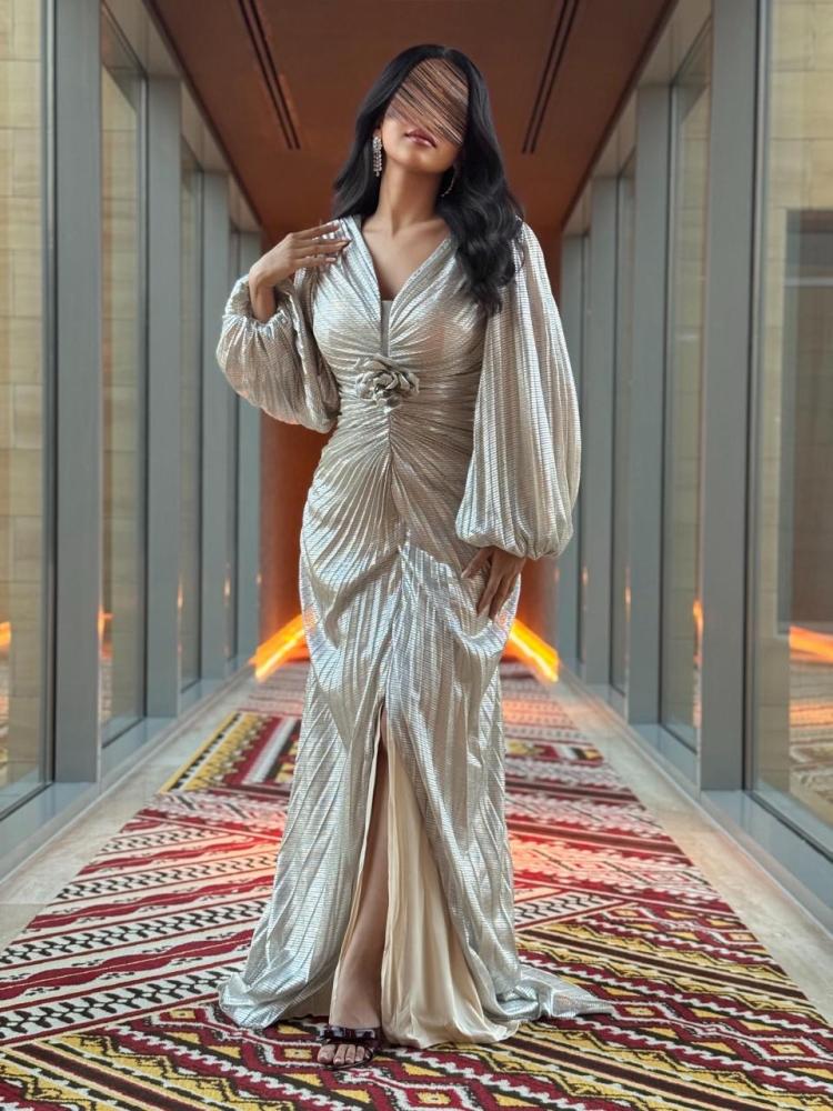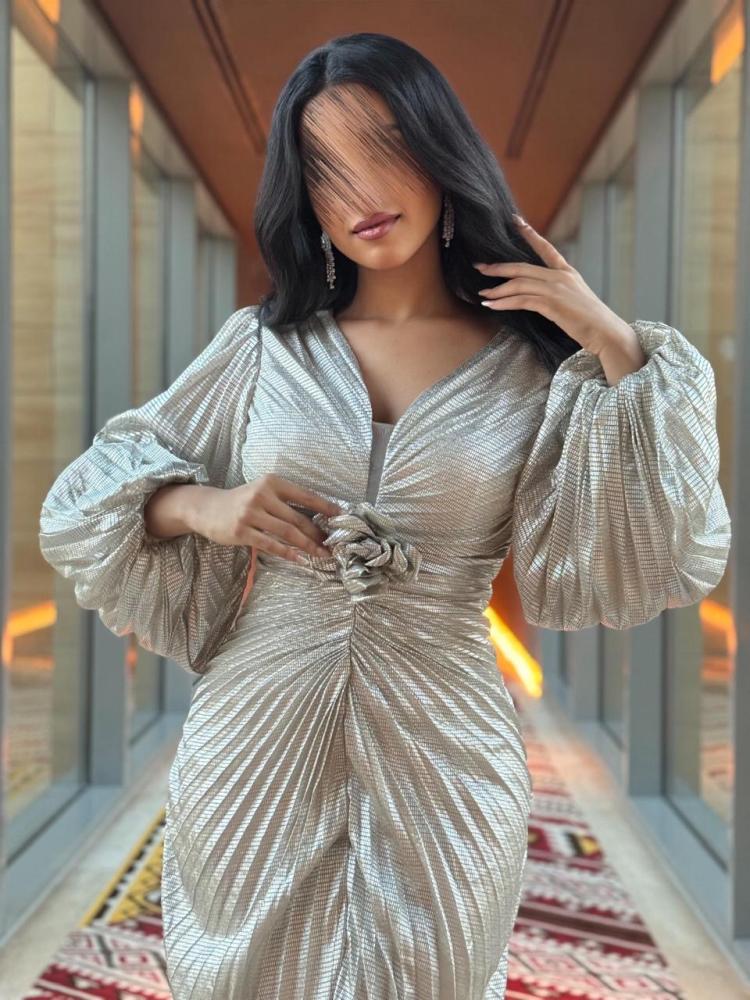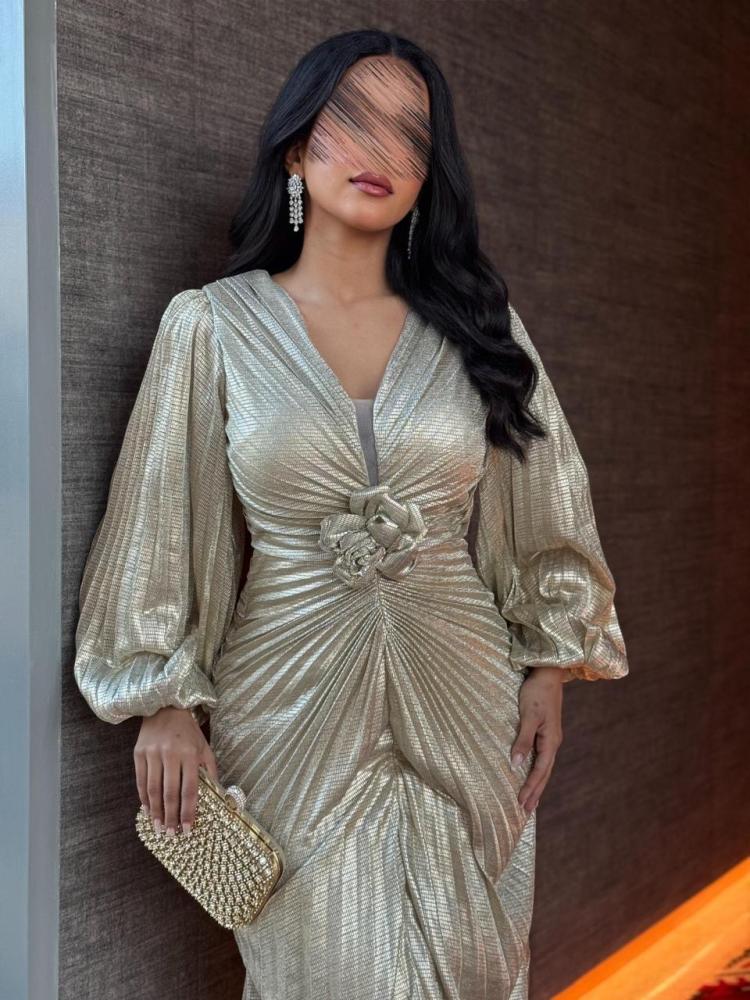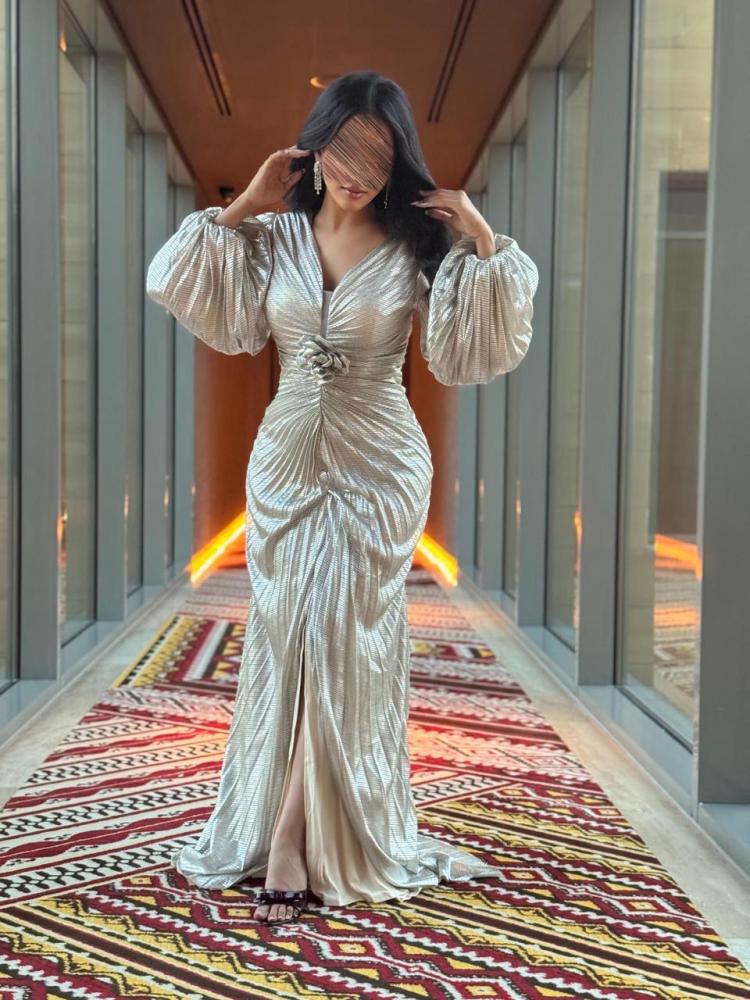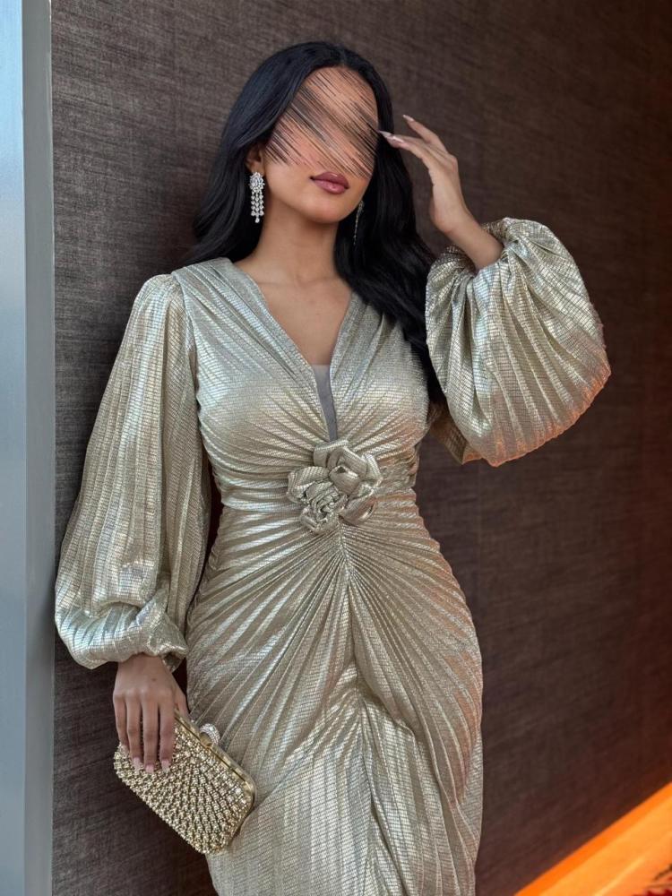فستان سهره بلمعه و بوردة من الخصر