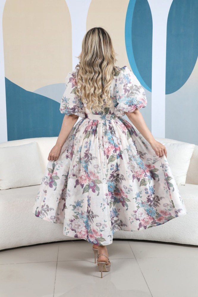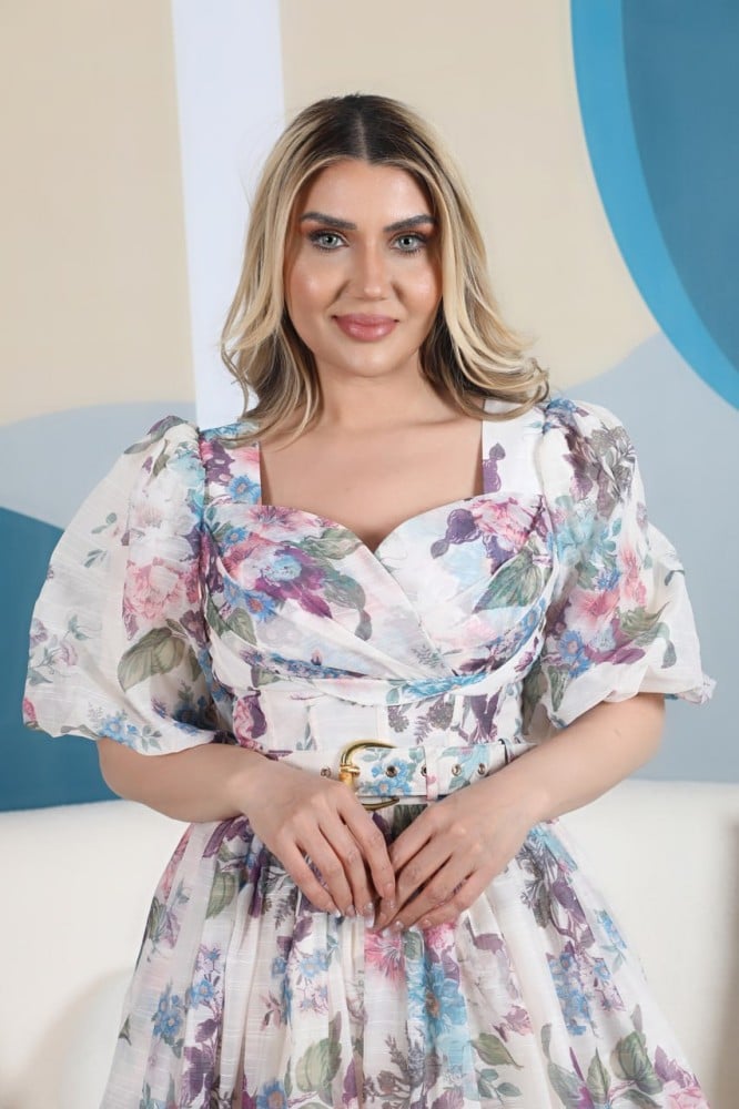 فستان ناعم مميز للعيد قصير مع حزام واكمام بف لا تترددي في طلبه من متجرنا