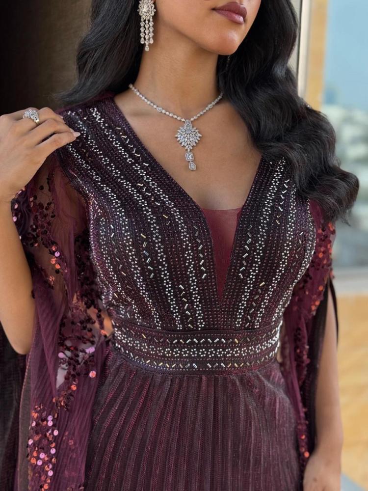 فستان ملكي بكسرات و بقصة اكمام طويله