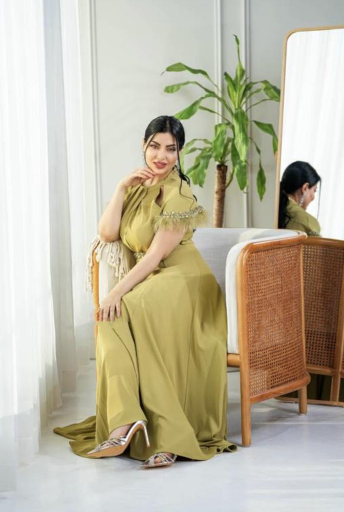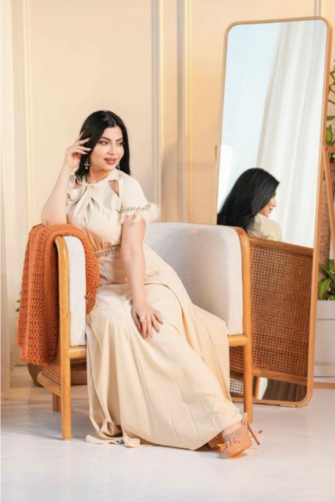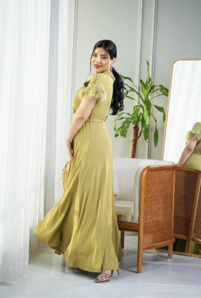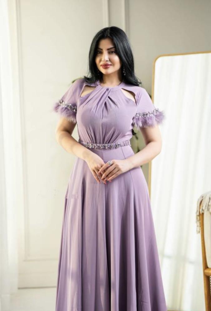 فستان ناعم بقصة من الصدر وريش من الاكمام