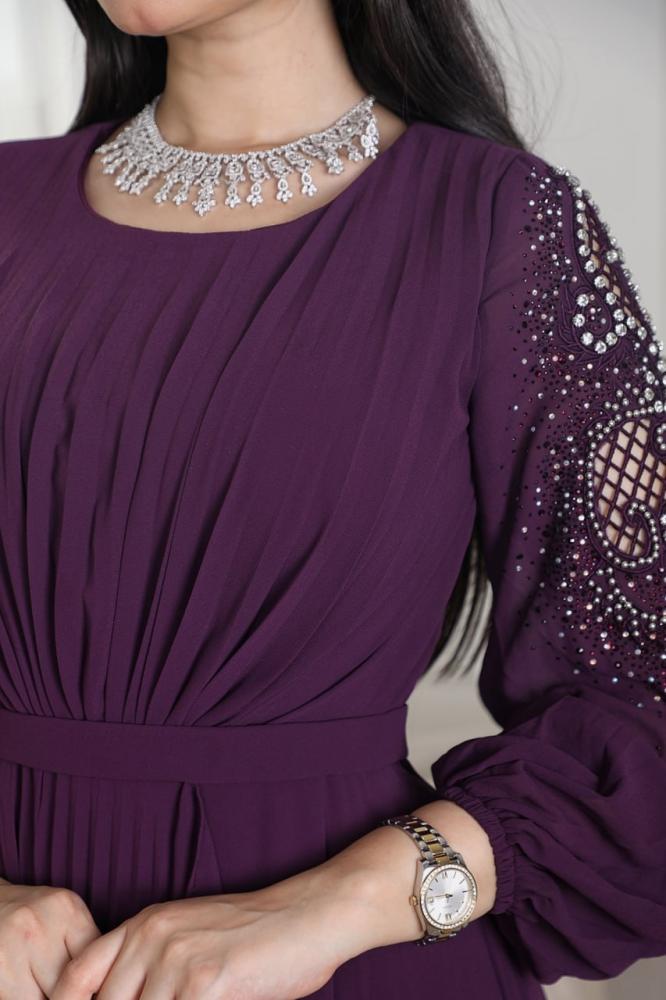 فستان بقصة أكمام وبكسرات من الصدر